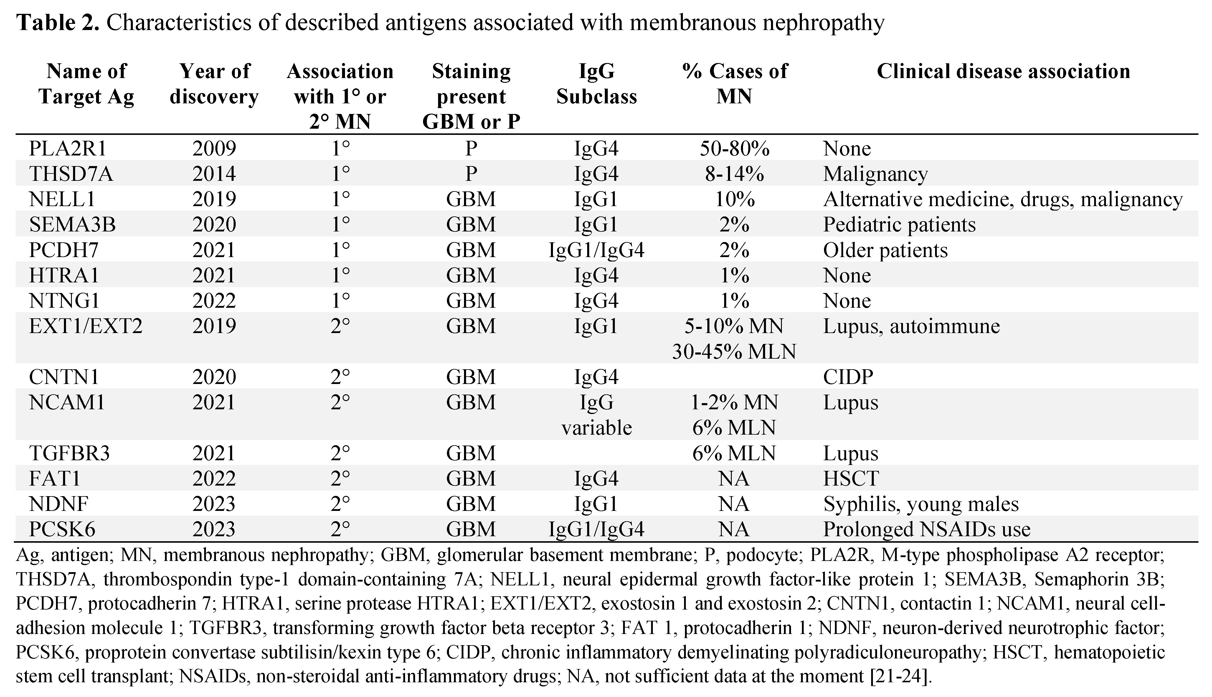 Table 2. Characteristics of described antigens associated with membranous nephropathy